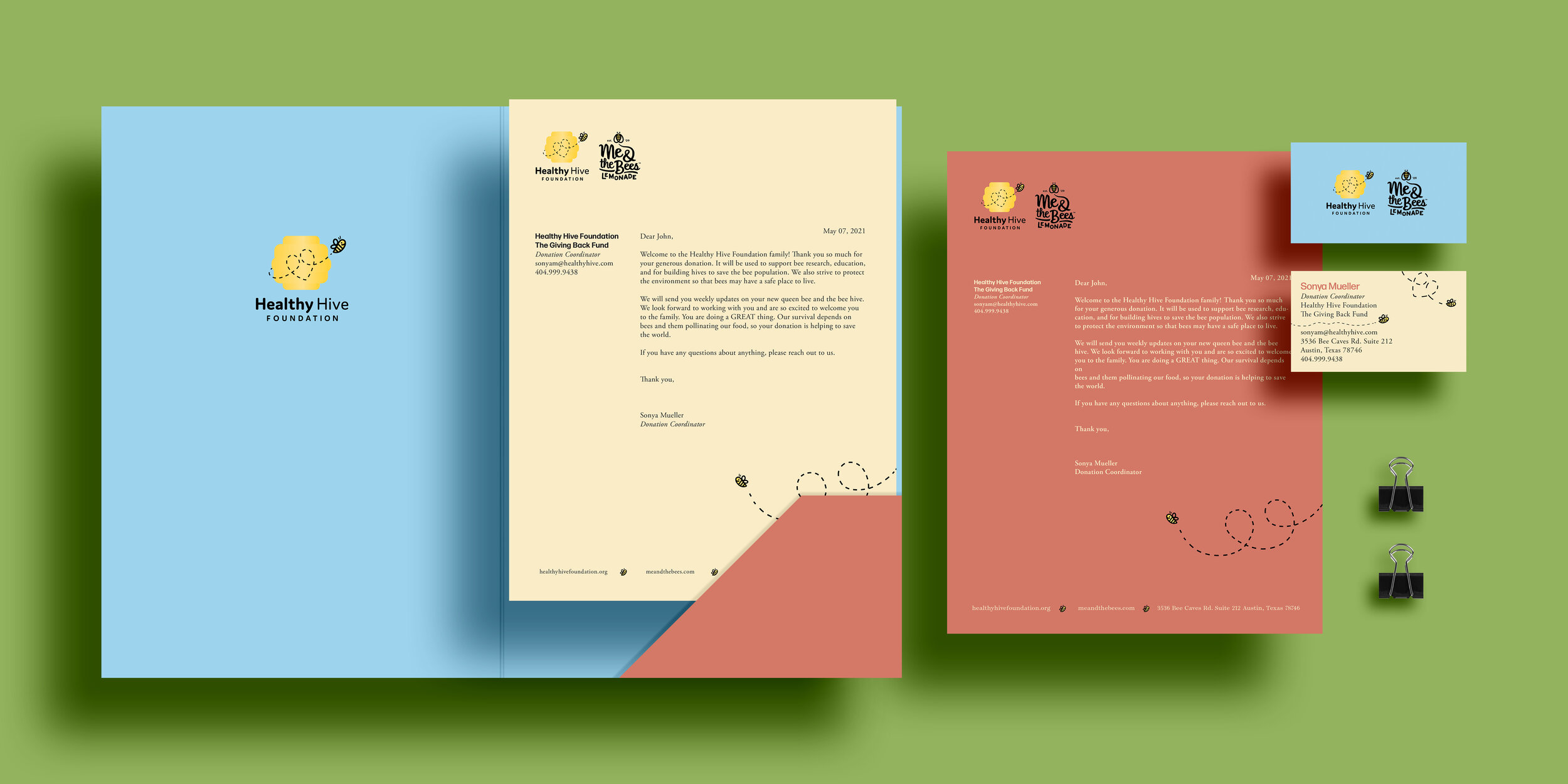 Proposed campaign for ‘Me and the Bees’ Lemonade brand; tying in the lemonade company with its non-profit while educating others about the importance of bees. The donor package and social media campaign aid in raising awareness and encourage donations.